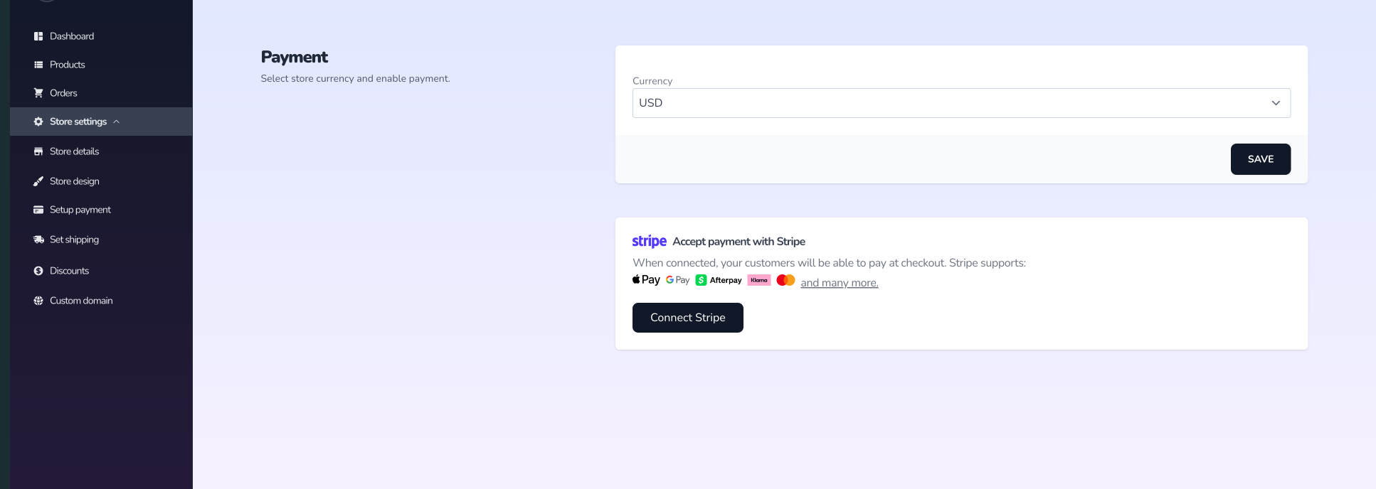 2. Connect Stripe to your store